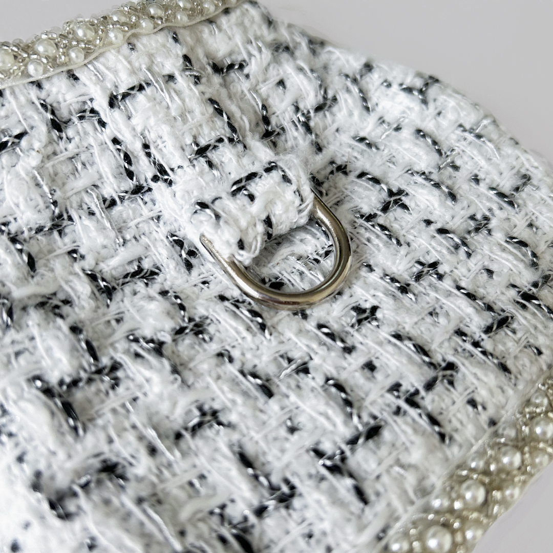 Elevate your pet’s style with our Envogue Dog Harness Collection by Hello Doggie. Each harness is thoughtfully designed, ensuring every baby receives the royal treatment they deserve. From the very selection of fabrics to the intricate piecing together of each harness, no detail is spared in creating these masterpieces. One of the standout features of our luxury dog harnesses is each one has their own unique lace trimming, with a range of classic and trendy styles to choose from, you can find the perfect style to suit your pup's personality and meet their fashion needs. It's not always that luxury items are comfortable, but Hello Doggie prioritizes on comfort and functionality of our harnesses. Thoughtful features such as Velcro straps are easy-to-use fasteners making it a breeze to put on and take off, ensuring a hassle-free experience for both you and your furry baby. When it comes to caring for your luxury dog harness, our high standards extend beyond its creation, to keep the coat looking its best so that your pup can continue to strut their stuff in style, spot clean or wash on delicate, no bleach or softener and air dry. Not only can you elevate your baby’s wardrobe all year round, matching coats for those cold chilly days are also available, sold separately.  *Check Size Chart*  Limited Edition  MSRP $84.00  *Harnesses are handmade sizes may vary slightly. Made in USA.