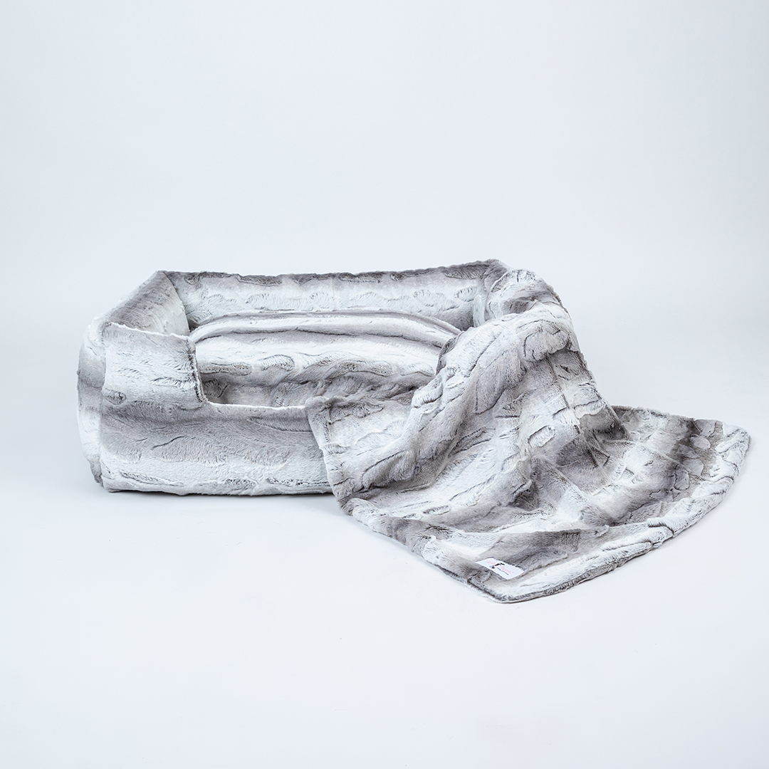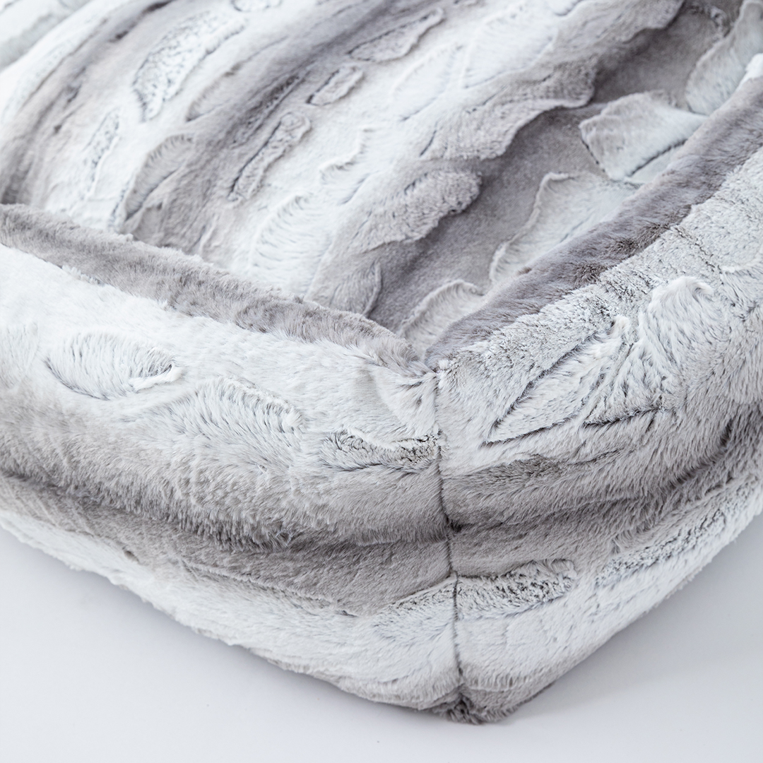 Your large fur baby isn't just a pet, they're royalty! Treat your pup like the king and queen with our new Big Baby Collection by Hello Doggie. This collections offers your pooch their own luxurious bed, where they can snooze away in comfort with plenty of room to stretch out and relax. Made from soft plush fabric and 100% poly-fiber fill, this bed features a non slip floor to hold the bed in place and a removable pillow for easy care. Wash on gentle cycle, no fabric softener or bleach. Air dry or tumble on low.   One Size   - For dogs up to 50 - 70 lbs  Outside - 37" L x 30" W x 10" H   |   Inside - 25" L x 21" W x 6" H |    Bolster - 6"in MSRP - $286.00 *Bed is handmade in the USA and sizes may vary slightly. Made in USA.