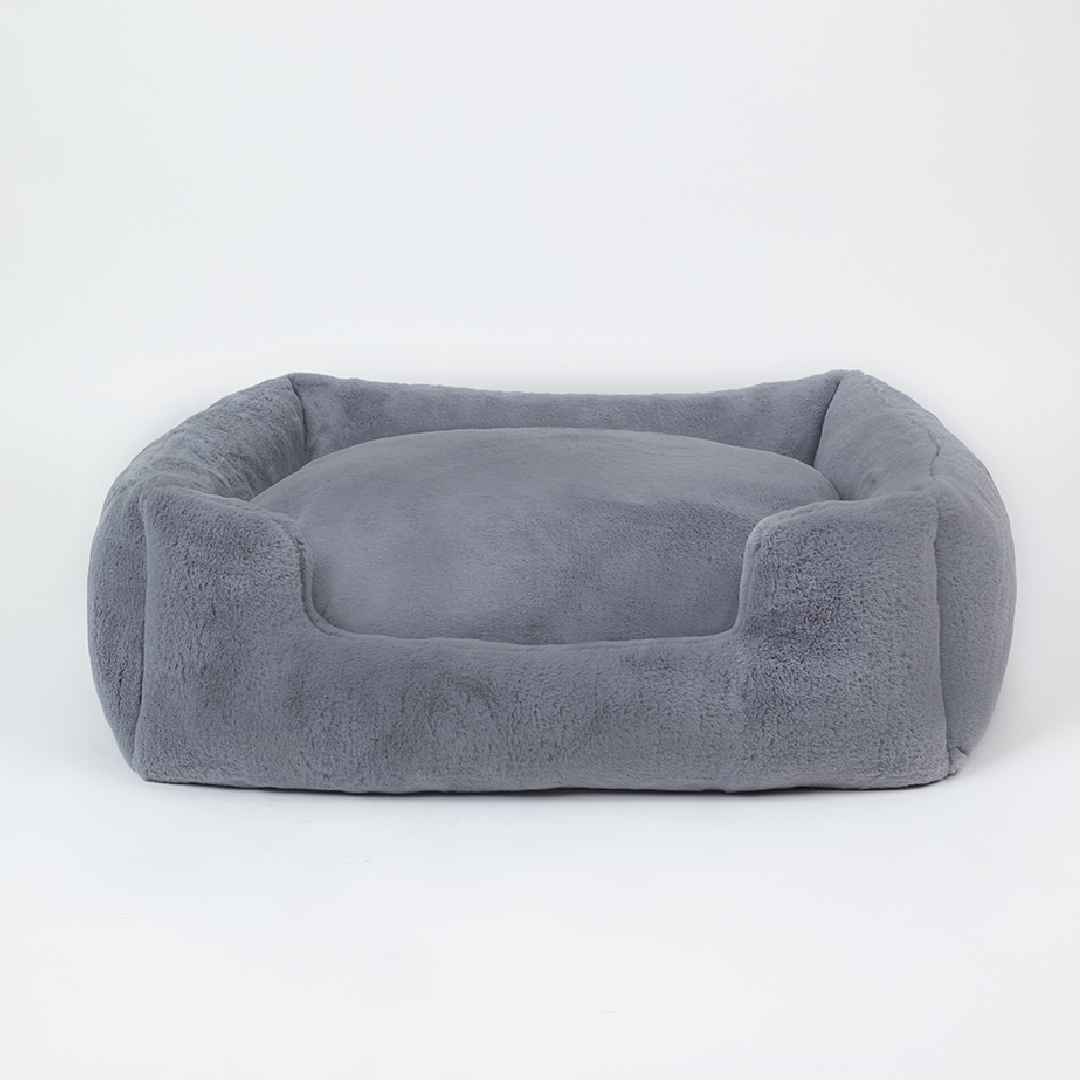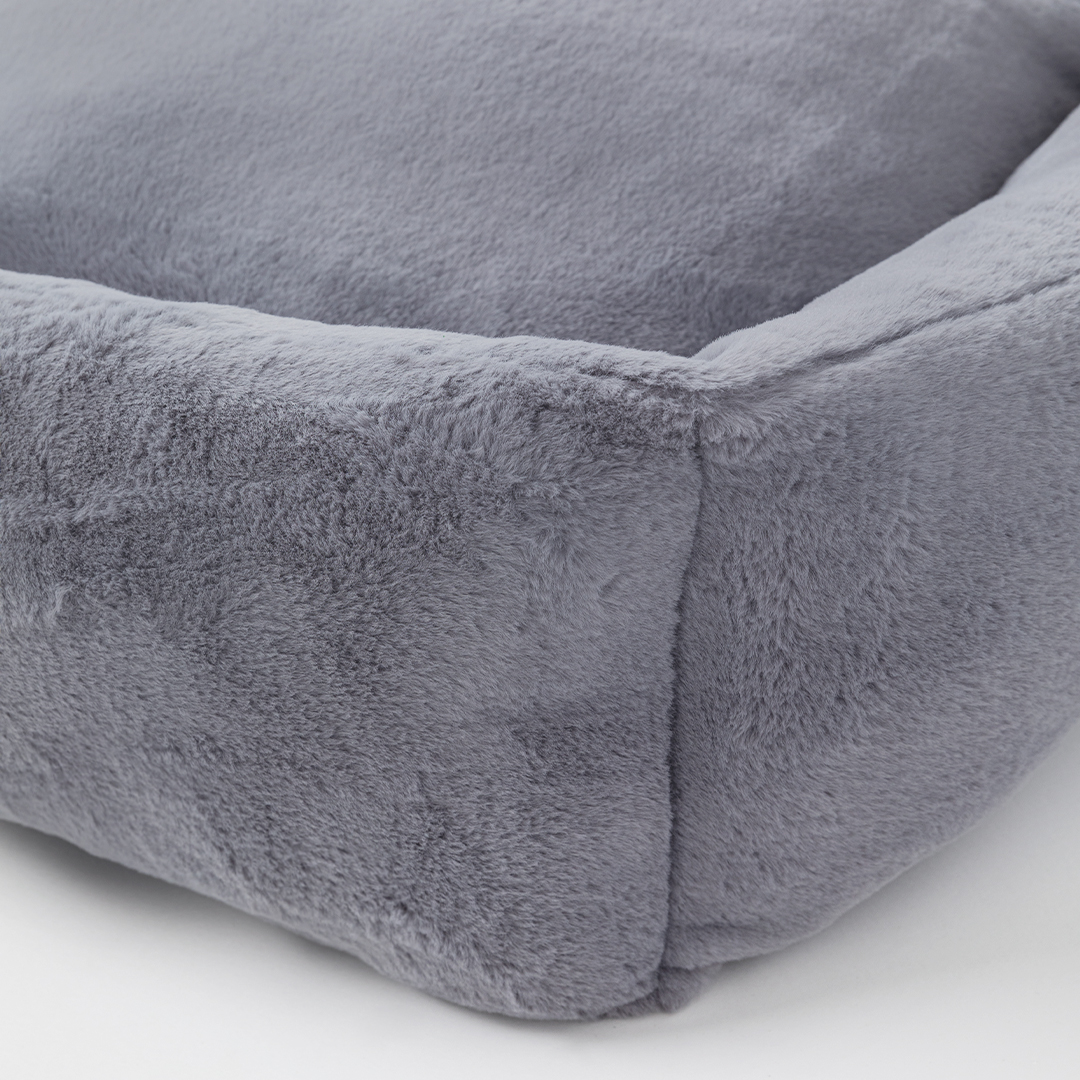Your large fur baby isn't just a pet, they're royalty! Treat your pup like the king and queen with our new Big Baby Collection by Hello Doggie. This collections offers your pooch their own luxurious bed, where they can snooze away in comfort with plenty of room to stretch out and relax. Made from soft plush fabric and 100% poly-fiber fill, this bed features a non slip floor to hold the bed in place and a removable pillow for easy care. Wash on gentle cycle, no fabric softener or bleach. Air dry or tumble on low.   One Size   - For dogs up to 50 - 70 lbs  Outside - 37" L x 30" W x 10" H   |   Inside - 25" L x 21" W x 6" H |    Bolster - 6"in MSRP - $286.00 *Bed is handmade in the USA and sizes may vary slightly. Made in USA.