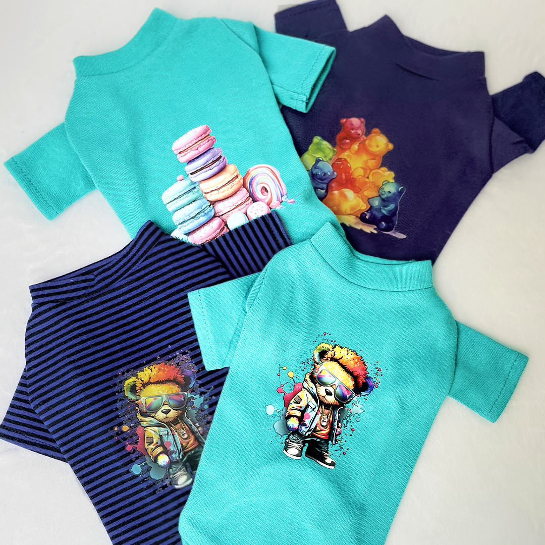 Introducing the edgy Punk Brats Dog Tee, a stylish creation made from comfortable jersey cotton knit fabric. This tee features a bold and rebellious bratty punk bear appliqué that adds a touch of attitude and flair to the design. Crafted for both comfort and style, this tee is perfect for showcasing your pet's unique personality while ensuring a comfortable fit for everyday wear. Let your furry friend stand out with an edgy and fashionable look in the Punk Brats Dog Tee, a must-have for pet owners who appreciate both comfort and cutting-edge style. Wash on gentle cycle in cold water, no bleach or softner and air dry or tumble on low. Sizes  | XXS - LG  MSRP $28.00 *Tees are handmade and sizes may vary slightly. Made in USA.